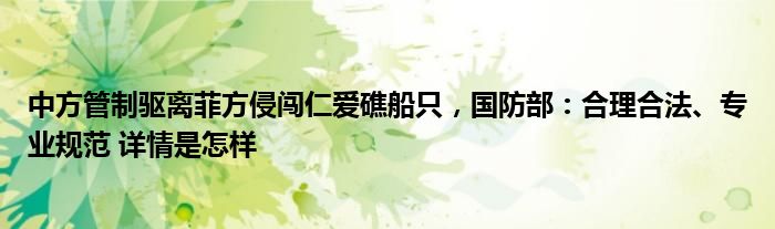 【中方管制驱离菲方侵闯仁爱礁船只,国防部:合理合法、专业规范】大家可以一起来了解一下这是什么情况!