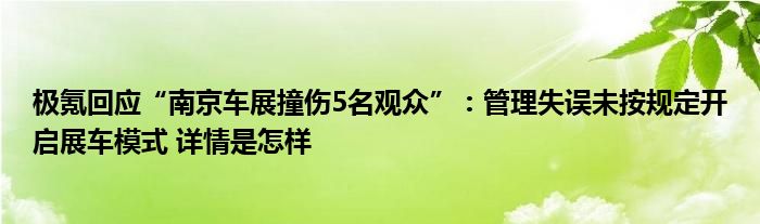 【极氪回应“南京车展撞伤5名观众”:管理失误未按规定开启展车模式】大家可以一起来了解一下这是什么情况!
