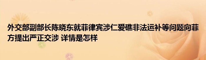 外交部副部长陈晓东就菲律宾涉仁爱礁非法运补等问题向菲方提出严正交涉 详情是怎样
