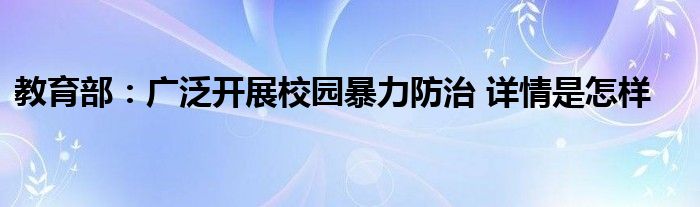 【教育部:广泛开展校园暴力防治】大家可以一起来了解一下这是什么情况!