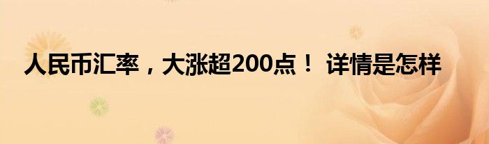 【人民币汇率,大涨超200点!】大家可以一起来了解一下这是什么情况!