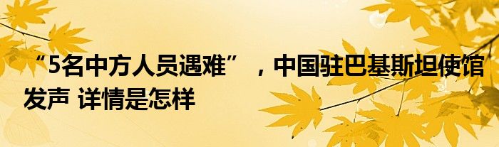 “5名中方人员遇难”,中国驻巴基斯坦使馆发声 详情是怎样