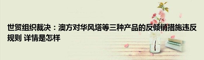 【世贸组织裁决:澳方对华风塔等三种产品的反倾销措施违反规则】大家可以一起来了解一下这是什么情况!