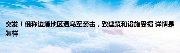 【突发!俄称边境地区遭乌军袭击,致建筑和设施受损】大家可以一起来了解一下这是什么情况!
