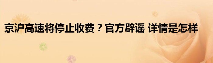 【京沪高速将停止收费?官方辟谣】大家可以一起来了解一下这是什么情况!