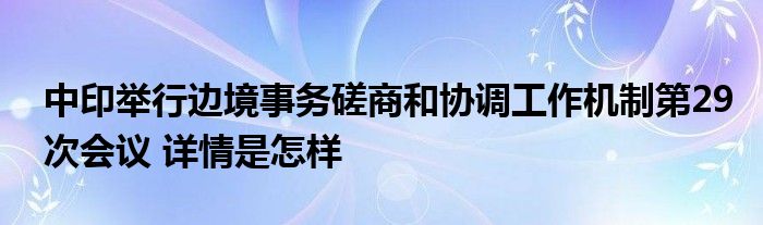 【中印举行边境事务磋商和协调工作机制第29次会议】大家可以一起来了解一下这是什么情况!