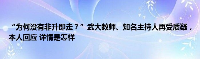 【“为何没有非升即走?”武大教师、知名主持人再受质疑,本人回应】大家可以一起来了解一下这是什么情况!
