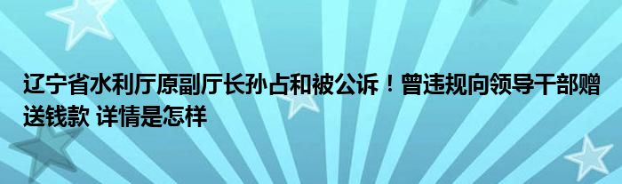 【辽宁省水利厅原副厅长孙占和被公诉!曾违规向领导干部赠送钱款】大家可以一起来了解一下这是什么情况!