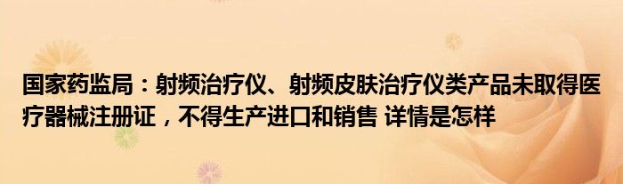 国家药监局:射频治疗仪、射频皮肤治疗仪类产品未取得医疗器械注册证,不得生产进口和销售 详情是怎样
