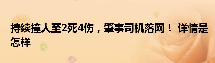 【持续撞人至2死4伤,肇事司机落网!】大家可以一起来了解一下这是什么情况!