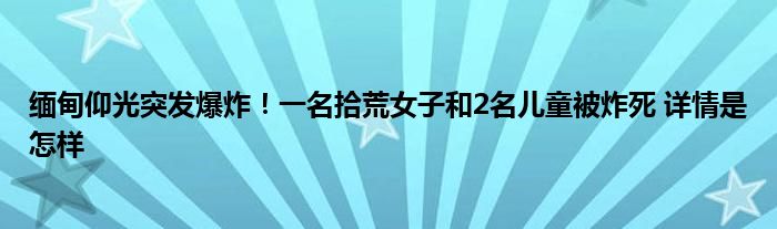 【缅甸仰光突发爆炸!一名拾荒女子和2名儿童被炸死】大家可以一起来了解一下这是什么情况!