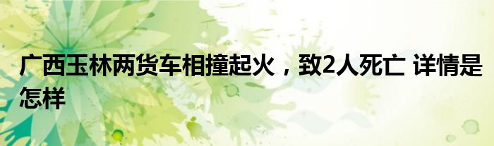 【广西玉林两货车相撞起火,致2人死亡】大家可以一起来了解一下这是什么情况!
