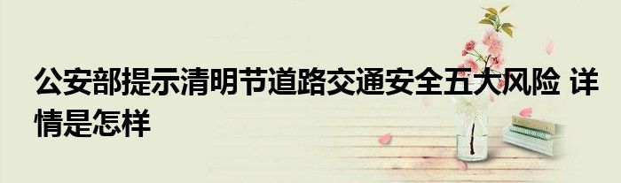【公安部提示清明节道路交通安全五大风险】大家可以一起来了解一下这是什么情况!