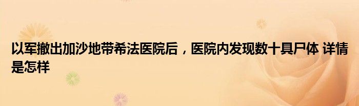 【以军撤出加沙地带希法医院后,医院内发现数十具尸体】大家可以一起来了解一下这是什么情况!