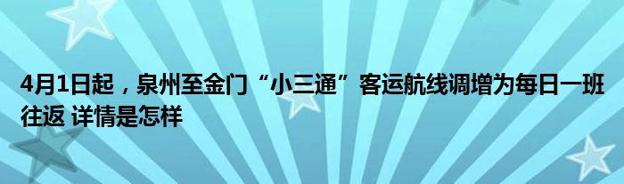 【4月1日起,泉州至金门“小三通”客运航线调增为每日一班往返】大家可以一起来了解一下这是什么情况!
