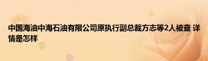 【中国海油中海石油有限公司原执行副总裁方志等2人被查】大家可以一起来了解一下这是什么情况!