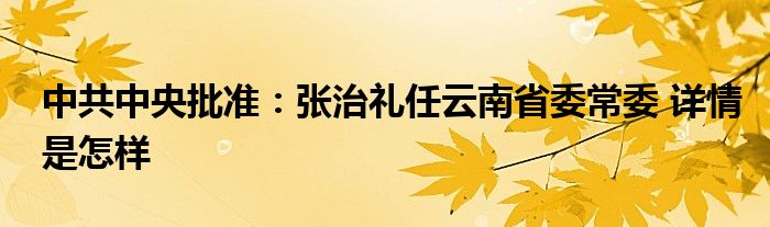 【中共中央批准:张治礼任云南省委常委】大家可以一起来了解一下这是什么情况!