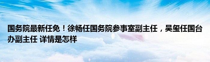 国务院最新任免!徐畅任国务院参事室副主任,吴玺任国台办副主任 详情是怎样