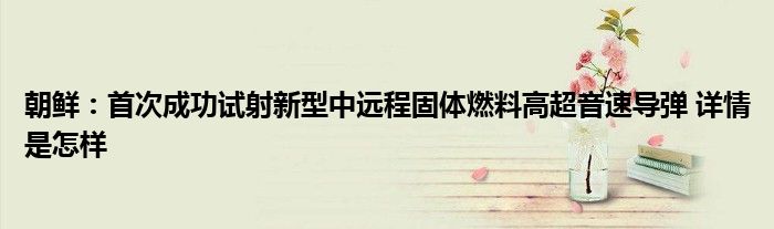 【朝鲜:首次成功试射新型中远程固体燃料高超音速导弹】大家可以一起来了解一下这是什么情况!