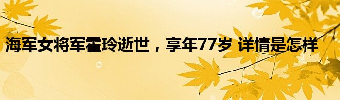 【海军女将军霍玲逝世,享年77岁】大家可以一起来了解一下这是什么情况!
