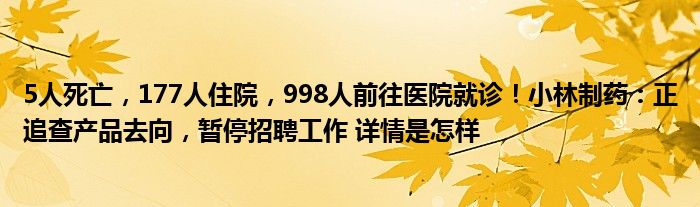 【5人死亡,177人住院,998人前往医院就诊!小林制药:正追查产品去向,暂停招聘工作】大家可以一起来了解一下这是什么情况!