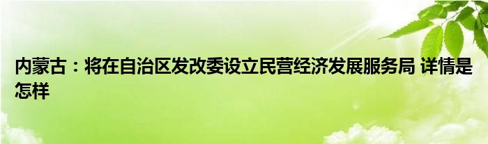 【内蒙古:将在自治区发改委设立民营经济发展服务局】大家可以一起来了解一下这是什么情况!