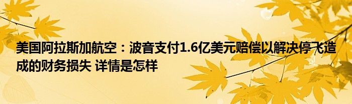 【美国阿拉斯加航空:波音支付1.6亿美元赔偿以解决停飞造成的财务损失】大家可以一起来了解一下这是什么情况!