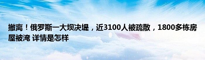 【撤离!俄罗斯一大坝决堤,近3100人被疏散,1800多栋房屋被淹】大家可以一起来了解一下这是什么情况!