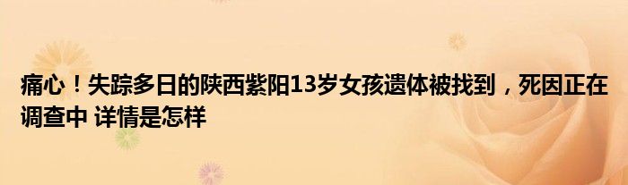 【痛心!失踪多日的陕西紫阳13岁女孩遗体被找到,死因正在调查中】大家可以一起来了解一下这是什么情况!