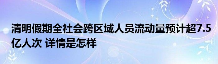 【清明假期全社会跨区域人员流动量预计超7.5亿人次】大家可以一起来了解一下这是什么情况!