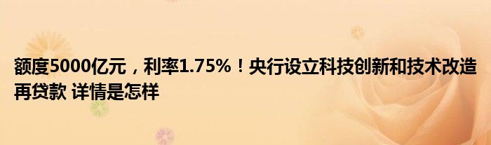 【额度5000亿元,利率1.75%!央行设立科技创新和技术改造再贷款】大家可以一起来了解一下这是什么情况!