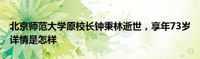 【北京师范大学原校长钟秉林逝世,享年73岁】大家可以一起来了解一下这是什么情况!