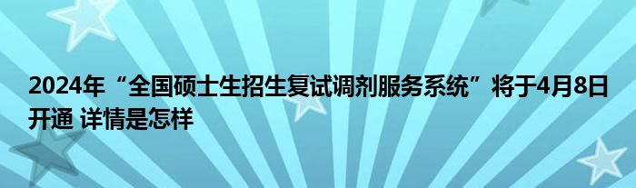 【2024年“全国硕士生招生复试调剂服务系统”将于4月8日开通】大家可以一起来了解一下这是什么情况!