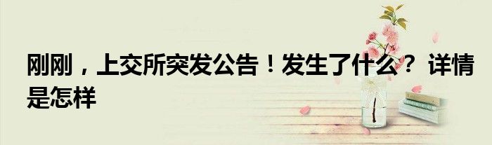 刚刚,上交所突发公告!发生了什么? 详情是怎样