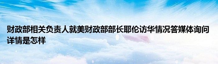 【财政部相关负责人就美财政部部长耶伦访华情况答媒体询问】大家可以一起来了解一下这是什么情况!