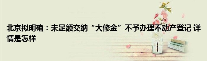 【北京拟明确:未足额交纳“大修金”不予办理不动产登记】大家可以一起来了解一下这是什么情况!