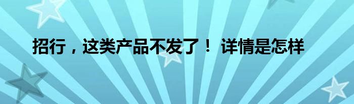 【招行,这类产品不发了!】大家可以一起来了解一下这是什么情况!