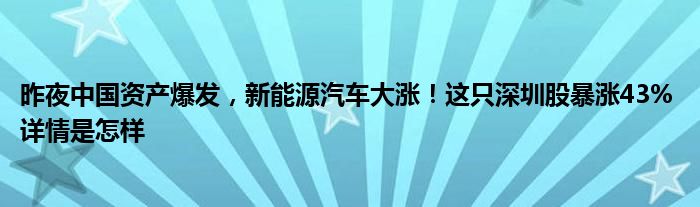 【昨夜中国资产爆发,新能源汽车大涨!这只深圳股暴涨43%】大家可以一起来了解一下这是什么情况!