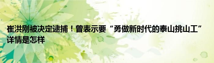 【崔洪刚被决定逮捕!曾表示要“勇做新时代的泰山挑山工”】大家可以一起来了解一下这是什么情况!