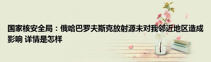 【国家核安全局:俄哈巴罗夫斯克放射源未对我邻近地区造成影响】大家可以一起来了解一下这是什么情况!