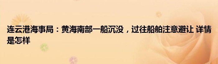 【连云港海事局:黄海南部一船沉没,过往船舶注意避让】大家可以一起来了解一下这是什么情况!