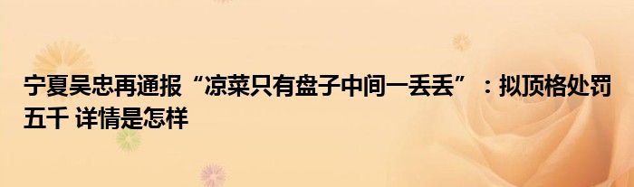 【宁夏吴忠再通报“凉菜只有盘子中间一丢丢”:拟顶格处罚五千】大家可以一起来了解一下这是什么情况!