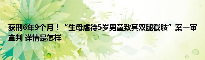 【获刑6年9个月!“生母虐待5岁男童致其双腿截肢”案一审宣判】大家可以一起来了解一下这是什么情况!