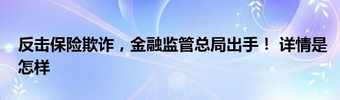 【反击保险欺诈,金融监管总局出手!】大家可以一起来了解一下这是什么情况!