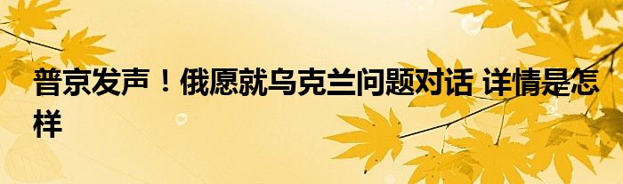 【普京发声!俄愿就乌克兰问题对话】大家可以一起来了解一下这是什么情况!