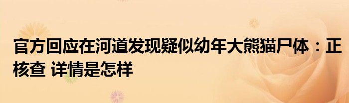【官方回应在河道发现疑似幼年大熊猫尸体:正核查】大家可以一起来了解一下这是什么情况!