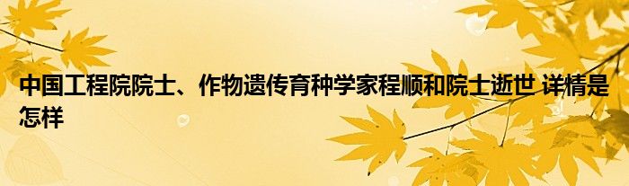 中国工程院院士、作物遗传育种学家程顺和院士逝世 详情是怎样