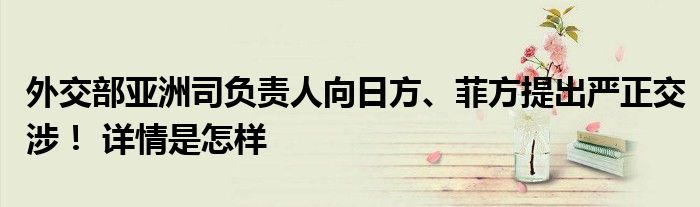 【外交部亚洲司负责人向日方、菲方提出严正交涉!】大家可以一起来了解一下这是什么情况!