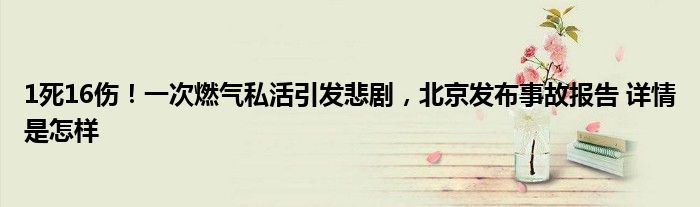 【1死16伤!一次燃气私活引发悲剧,北京发布事故报告】大家可以一起来了解一下这是什么情况!