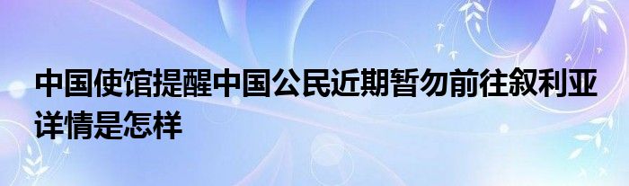 【中国使馆提醒中国公民近期暂勿前往叙利亚】大家可以一起来了解一下这是什么情况!